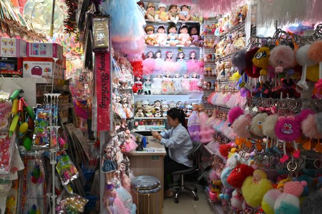 Au marché international de Yiwu,dans la province du Zhejiang (Chine),le 10 avril 2025. ADEK BERRY/AFP Noël est encore bien loin,sauf à Yiwu,cette ville chinoise de la province du Zhejiang qui accueille le plus grand marché de gros au monde,fort de 75 000 fournisseurs,répartis en six ensembles de bâtiments. L’un d’eux rassemble tout ce que la Chine ou presque peut offrir de fabricants de sapins artificiels,de guirlandes,de boules en tout genre. Le bureau de Kitty Shuang Peng,qui,en 2024,a repris avec son compagnon l’usine de ses parents fondée il y a vingt ans et ses cinquante salariés,est encerclé de conifères factices.