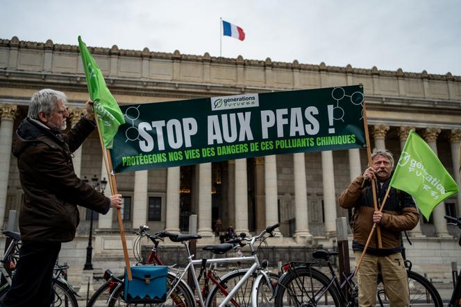 Rassemblement devant la cour d'appel de Lyon,le 11 février 2025. NICOLAS LIPONNE / MAXPPP C’est à un dilemme aujourd’hui « impossible à résoudre » que veut s’attaquer la CGT. Alors que l’impact des substances perfluoroalkylées et polyfluoroalkylées (PFAS) sur l’environnement et la santé des populations a encore été souligné par une série d’enquêtes menées par 30 médias dont Le Monde,pointant la responsabilité des industriels – 20 sites de production en Europe,230 usines utilisatrices –,le syndicat refuse que les travailleurs en soient réduits à cette mauvaise équation : « Si l’entreprise continue à polluer,elle tue physiquement ; si elle ferme,elle tue socialement. »