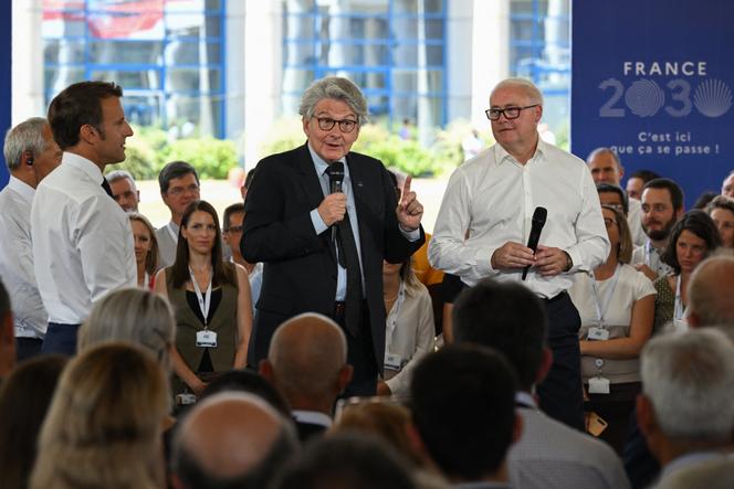 Le président de STMicroelectronics,Jean-Marc Chéry (à droite),au côté du commissaire européen au marché intérieur,Thierry Breton,et du président Emmanuel Macron,lors d’une visite chez STMicroelectronics à Crolles (Isère),le 12 juillet 2022. JEAN-PHILIPPE KSIAZEK / AFP Jean-Marc Chéry,président du directoire et directeur général de l’entreprise STMicroelectronics,juge que l’Europe ne doit pas se sous-estimer malgré un objectif européen des capacités de production mondiales dans les semi-conducteurs inatteignable d’ici à 2030.