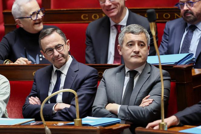 Le ministre de l’intérieur,Bruno Retailleau,et le ministre de la justice,Gérald Darmanin,à l’Assemblée nationale,à Paris,le 18 mars 2025. SARAH MEYSSONNIER / REUTERS François Bayrou a tranché : le gouvernement inscrira à l’ordre du jour de l’Assemblée nationale la proposition de loi interdisant le voile islamique dans le sport,adoptée au Sénat le 18 février. Le premier ministre s’est toutefois gardé de donner lui-même la « ligne » du gouvernement,chargeant Aurore Bergé d’annoncer à l’Hémicycle,mardi 18 mars,puis au Sénat,mercredi,le soutien de l’exécutif au texte sénatorial. « Aucun signe religieux ostentatoire ne doit être porté lors des compétitions sportives »,a martelé,dans les deux chambres,la ministre déléguée chargée de l’égalité entre les hommes et les femmes et de la lutte contre les discriminations,pour qui « un terrain de sport n’a pas à être un lieu d’entrisme religieux,d’entrisme politique ».